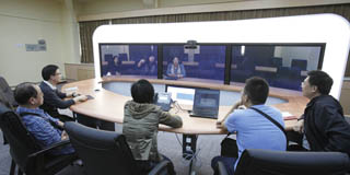 | 视频会议系统,又称会议电视系统,指两个或两个以上不同地方的个人或群体,通过传输线路及多媒体设备,将声音、影像及文件资料互传,实现即时且互动的沟通,以实现会议目的的系统设备。视频会议的使用有点像电话,除了能看到与你通话的人并进行语言交流外,还能看到他们的表情和动作,使处于不同地方的人就像在同一房间内沟通。 |